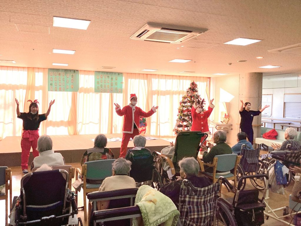職員もサンタクロースのコスプレで、利用者様と一緒に楽しんでおります🎵